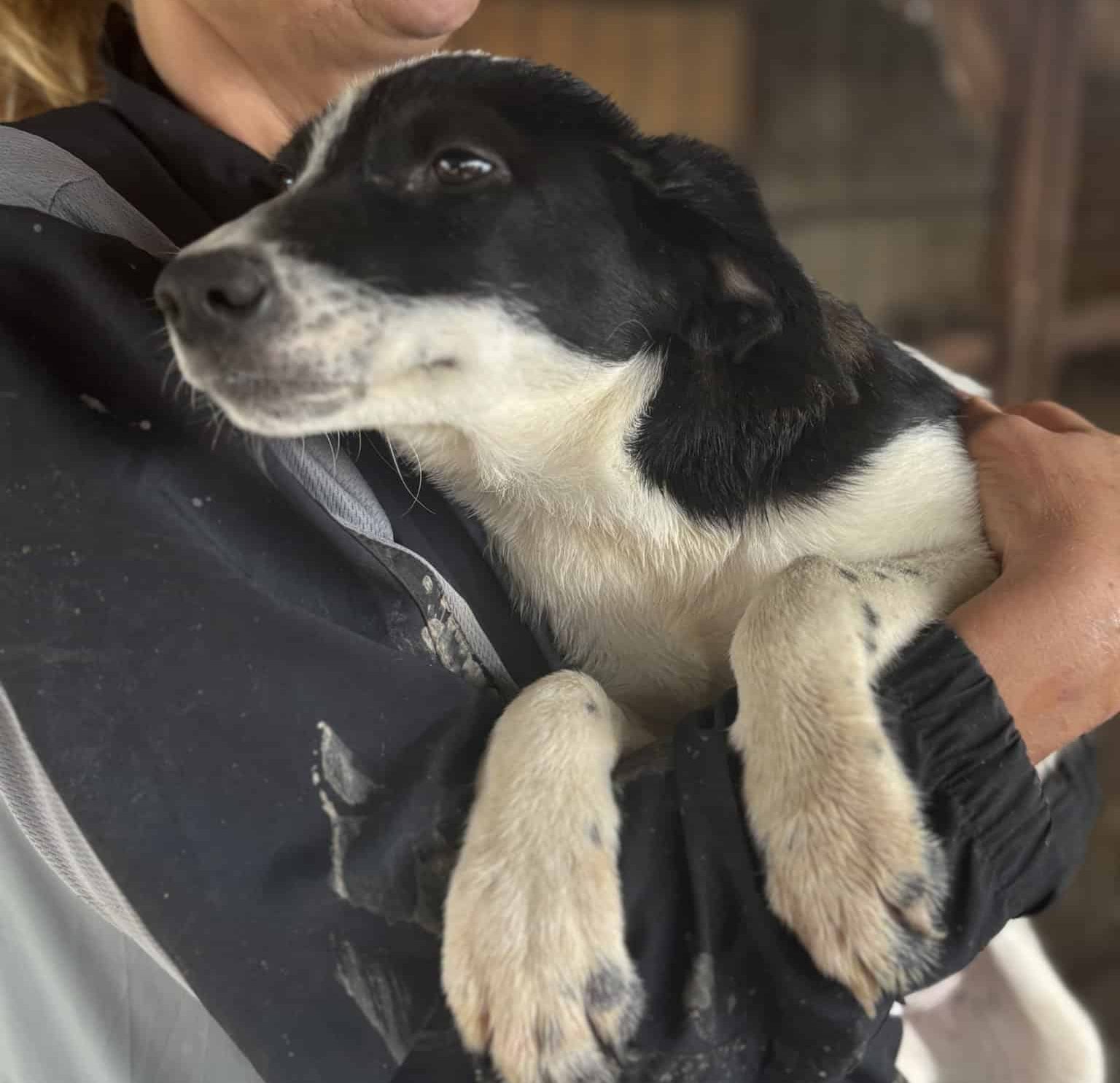 Die beiden Junghunden blieben ganz ruhig und waren sehr lieb, als wüssten sie, dass sie als Schutzengel der Welpen, nicht nur sich selber, sondern gleich noch 14 kleine Seelchen gerettet haben.