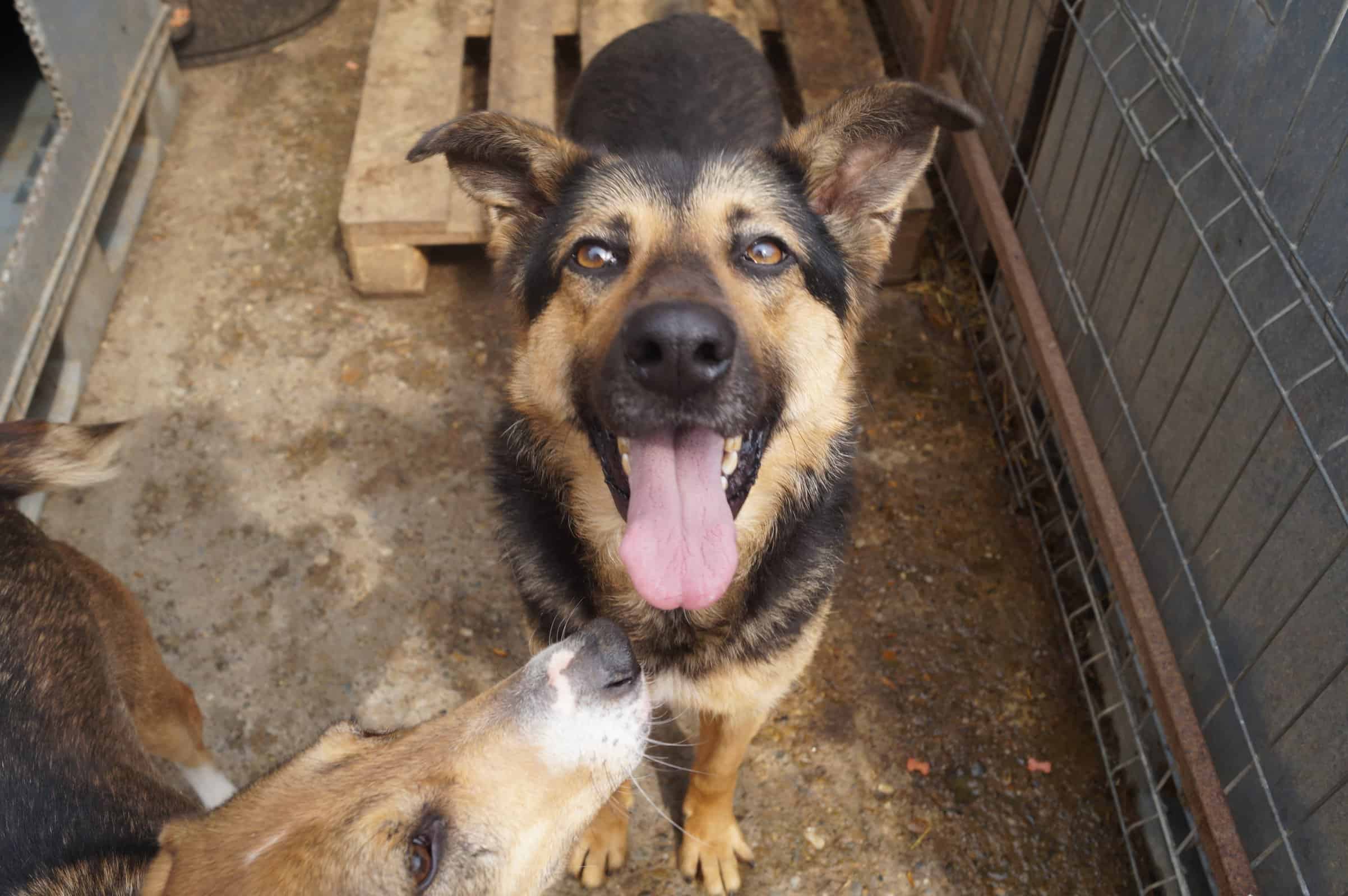 Mit meinen Hundekumpels verstehe ich mich ebenfalls super. Ich liebe es mit ihnen herumzutollen und zu spielen und hätte deshalb am liebsten auch einen Kumpel oder eine Kumpeline in meiner neuen Familie! Ein Muss ist es aber nicht, ich werde mich auch alleine zu beschäftigen wissen. Schließlich habe ich dafür ja dann ganz viel Zeit für meine neuen Menschen. Futterneid habe ich in der kurzen Zeit bisher nicht gezeigt und auch gejagt habe ich noch nichts. Aber zugegebenermaßen sind hier außer meiner Artgenossen auch nicht viele Tiere, die ich kennen lernen kann. Ich weiß also noch nicht genau, ob ich mich mit Katze, Hase oder Pferd verstehe. Aber ich bin offen für jedes Treffen!