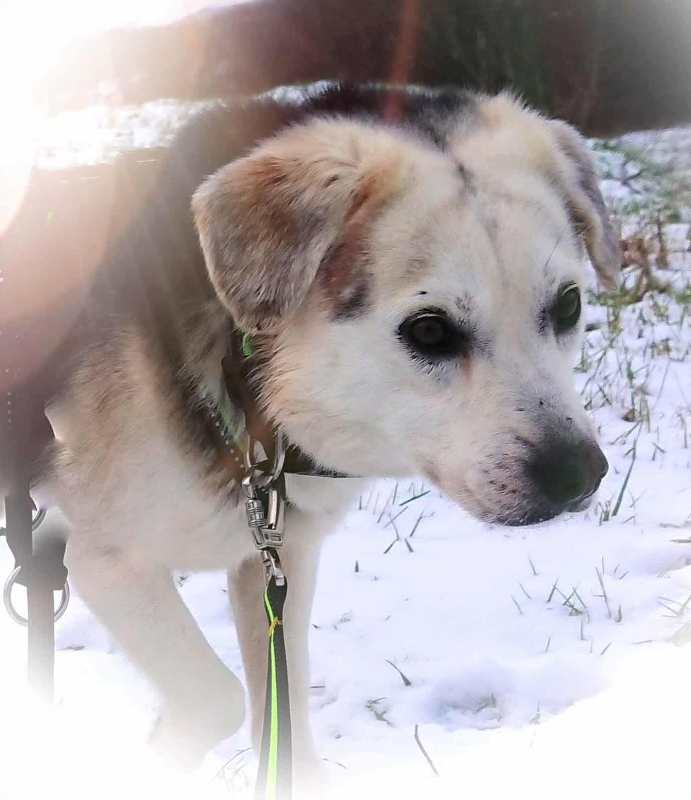 Bei meinen Artgenossen bin ich noch etwas zurückhaltender, fast schüchtern und suche absichernd den Blick zu meiner Bezugsperson. Auch sind mir verschiedene Untergründe, wie Gitter oder offene Treppen noch nicht ganz geheuer. Und an laute Menschen oder Fahrräder muss ich mich auch erst noch gewöhnen. Aber ich bin ja auch erst seit kurzem hier und in naher Zukunft werde ich bestimmt noch nicht mal mehr mit der Wimper zucken bei diesen Sachen! Immerhin habe ich in dieser kurzen Zeit schon jede Menge gelernt. Unter anderem kann ich in Gesellschaft mit einem anderen Hund ein paar Stunden alleine bleiben, mit gutem Zureden im Auto mitfahren und die Basics an Grundkommandos beherrsche ich auch schon ganz gut. Selbst die Leinenführigkeit wird jeden Tag besser! Sogar Katzen interessieren mich nicht wirklich. Aber ich bin eben auch noch etwas eingeschüchtert in allen mir neuen Situationen, da halte ich mich grundsätzlich erst einmal zurück. Mein Selbstbewusstsein hier muss erst einmal wachsen und diese Zeit kann hervorragend dazu genutzt werden, mir Grenzen und Regeln beizubringen und mir Sicherheit zu vermitteln, die ich so dringend brauche.