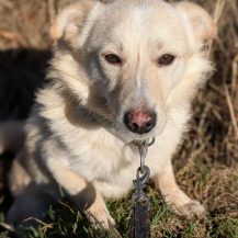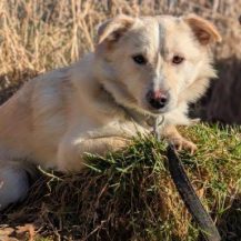 Ich bin eines von drei Geschwistern, die mutterseelenalleine in der Nähe des Shelters gefunden wurden. Um uns einigermaßen sicher zu fühlen, hatten wir uns dort im hohen Gras versteckt. Nun bin ich groß genug, um mich auf die Suche nach meiner Familie zu machen. Ich bin ein aufgeweckter, verspielter Hundebub mit einer süßen Lakritznase, kleinen Schlappöhrchen und einem beinahe weißen Fell.