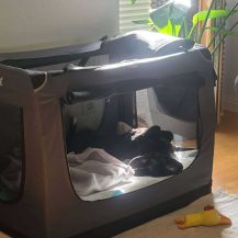 Unsere rumänischen Mitarbeitenden haben sie liebevoll aufgepäppelt, gewärmt, gefüttert, in ein sicheres Nest gelegt. Jetzt hat sie die ersten Impfungen geschafft, ist aus dem Babybettchen in einen kleinen Zwinger mit warmer Hütte und kuscheligem Körbchen gezogen – bereit für das nächste Kapitel.
