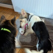 In der Familie leben auch Hunde. Egal, ob größer oder kleiner als ich, ich finde sie alle großartig. Auch an diesen miauenden Vierbeiner, der zwar für mich manchmal missverständliche Signale aussendet, habe ich mich gewöhnt.
