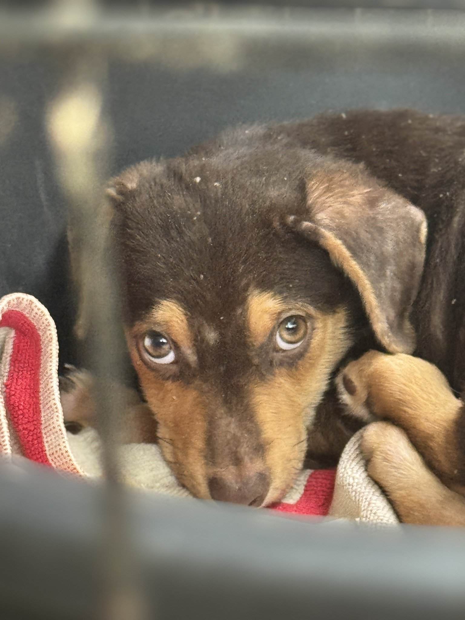 Lange musste Zara getrennt von den anderen Welpen leben, um gesund zu werden. Sie wurde liebevoll aufgepäppelt, ihre Hautprobleme sind behandelt – doch die Seele heilt langsamer als der Körper. In ihrer Box lag sie oft still und teilnahmslos, kaum fähig, Freude zu empfinden. Selbst auf sanfte Worte und vorsichtige Streicheleinheiten reagierte sie kaum. Man spürte, wie sehr die Einsamkeit und das Leben im Shelter sie überforderten.