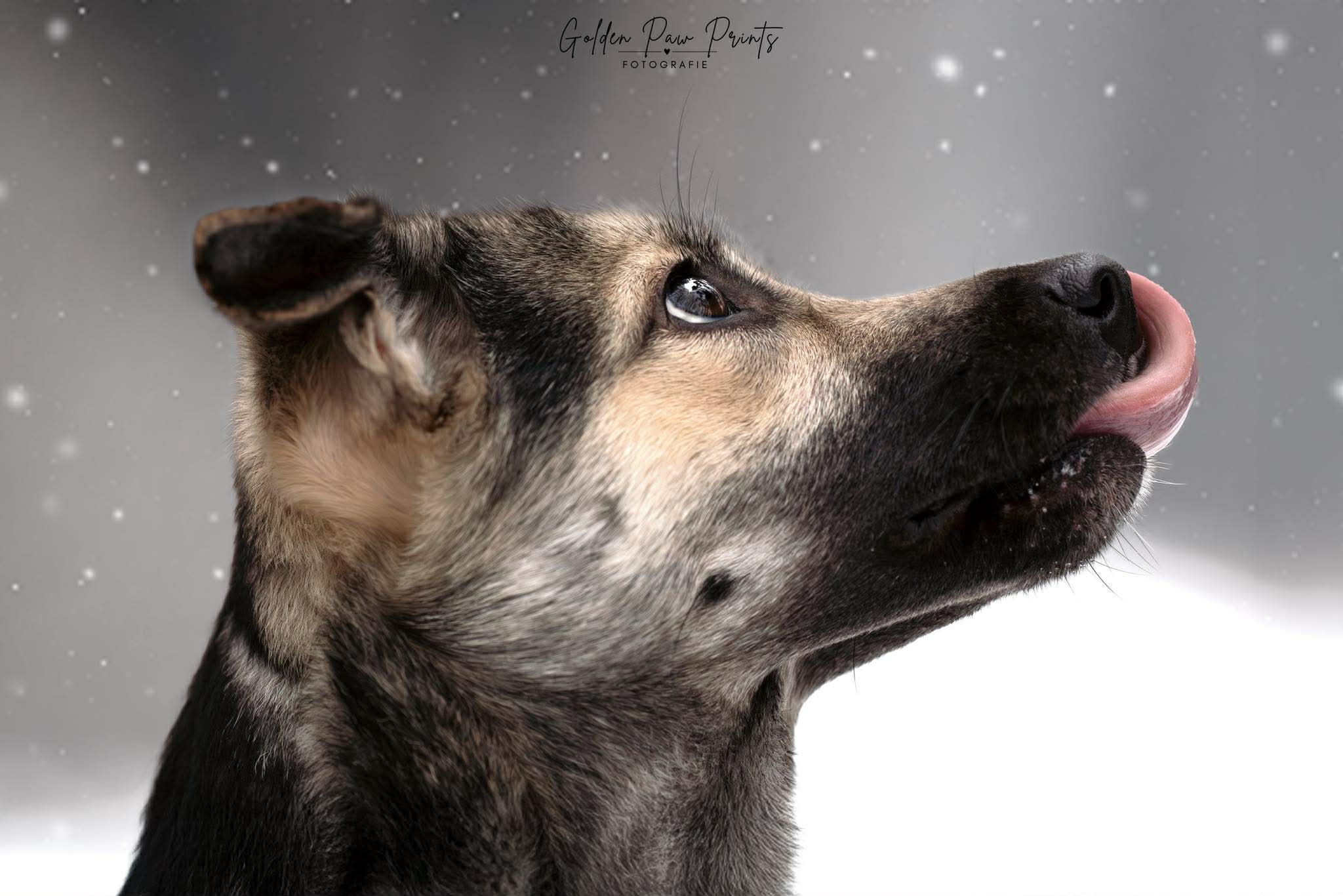 Meine Mama war ein kleiner Hund, mein Papa eine deutsche Bracke. Bei einem Spayathon haben die Menschen Mama kastriert. Wir Welpen blieben dort zurück. Plötzlich war alles anders: kein vertrauter Herzschlag mehr, kein schützender Blick, keine wärmende Nähe. Wir wurden getrennt – und in mir ist seitdem diese Leere, dieses Gefühl, dass mir etwas fehlt, das eigentlich nie fehlen sollte. Ich bin klein, doch die Welt scheint so groß, so fremd und manchmal beängstigend. Schwarze Hunde, sagt man, sind unsichtbar. Aber ich will nicht unsichtbar sein. Ich will nicht einfach vorbeigehen an den Herzen der Menschen. Ich will, dass jemand innehält, mich anschaut und denkt: „Der da – der gehört zu mir.“