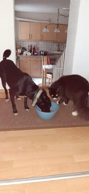 Mit meinen Artgenossen verstehe ich mich vermutlich sehr gut, schließlich kenne ich das Zusammenleben mit ihnen aus meiner Vergangenheit und habe ihre Anwesenheit immer sehr genossen. Andere Tiere habe ich bisher noch nicht kennen gelernt, aber da ich bis jetzt noch kein Jagdverhalten zeige, denken meine Menschen, dass ein Zusammenleben nach einer Eingewöhnungsphase bestimmt gut klappen könnte. Das muss man einfach mal testen!