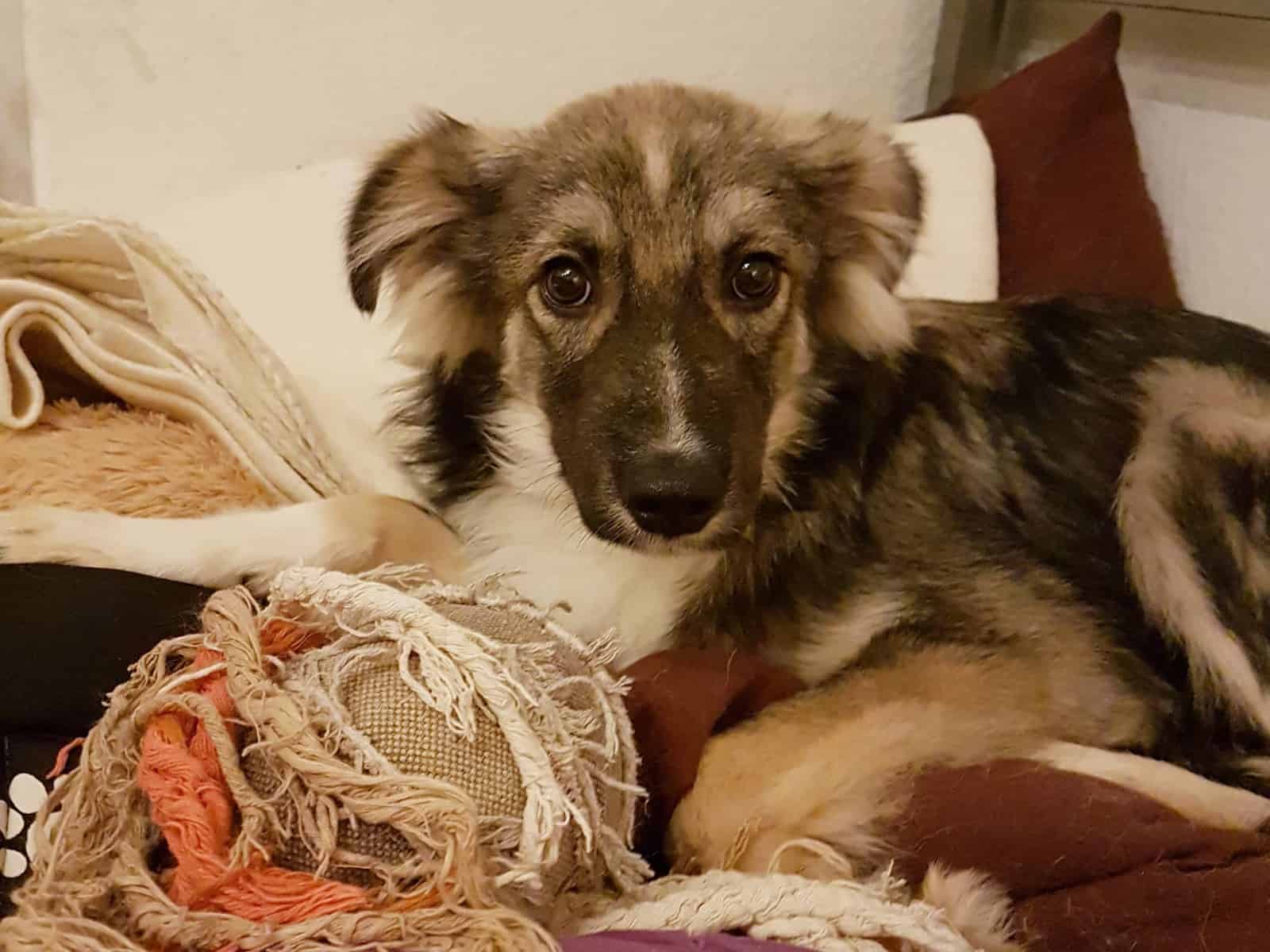 Obwohl ich erst seit kurzer Zeit in Deutschland bin, habe ich schon die ersten Grundkommandos „Sitz“ und „Bleib“ gelernt und höre gut auf meinen Namen. Stubenrein bin ich inzwischen zuverlässig, zudem laufe ich relativ angenehm an der Leine und auch Treppen stellen mich vor keine Herausforderung. Aktuell besteht mein größtes Problem leider im Alleinebleiben, denn sobald ich ohne meine Menschen zurückbleiben muss, fange ich an zu jaulen und kratze vor Verzweiflung an den Türen. An dieser Problematik sollten wir also noch arbeiten, damit ich irgendwann lerne zu entspannen.